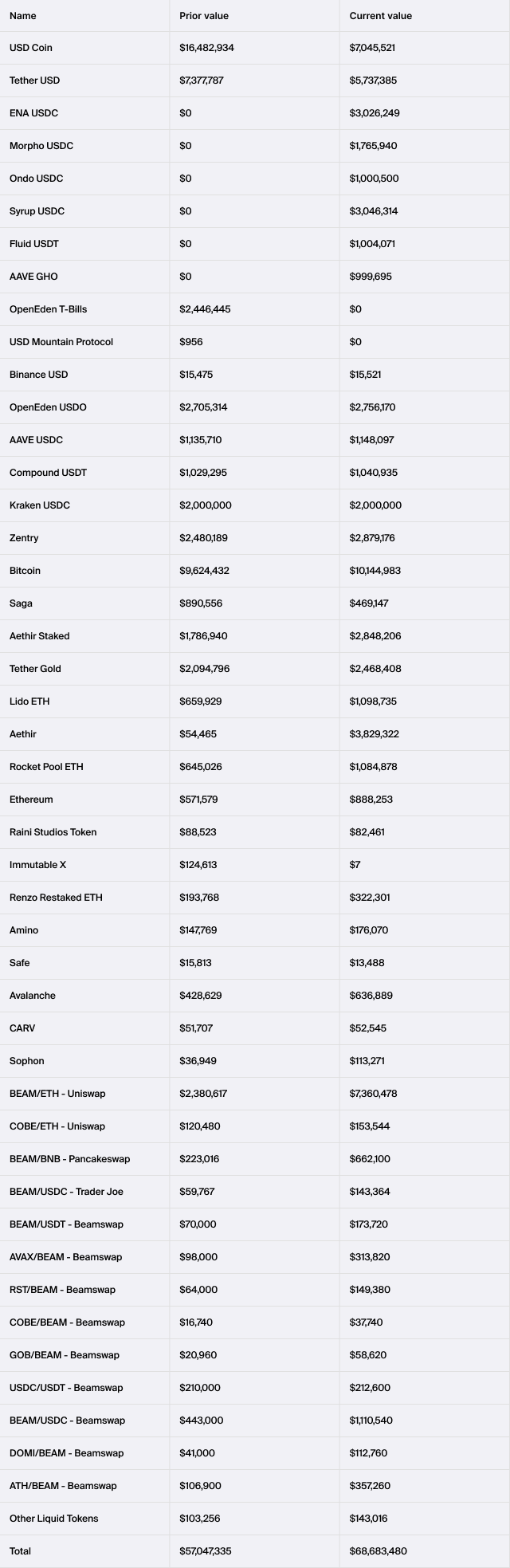 Breakdown of the Beam ecosystem treasury (the “Treasury”) as of September 30th 2025