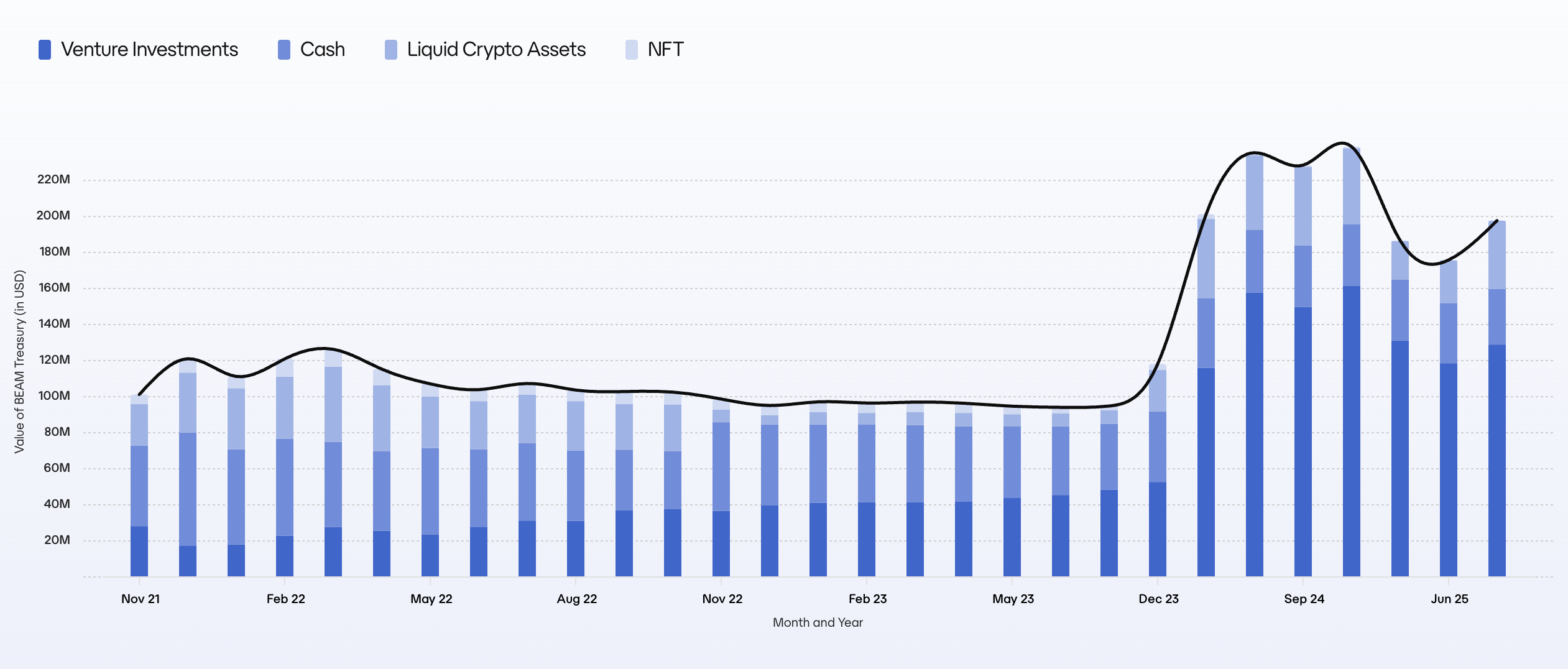 As of September 30th 2025, the Treasury balance is valued at $197,709,847. In addition, the Treasury contains 10,798,489,036.06 BEAM tokens valued at $87.54m.
