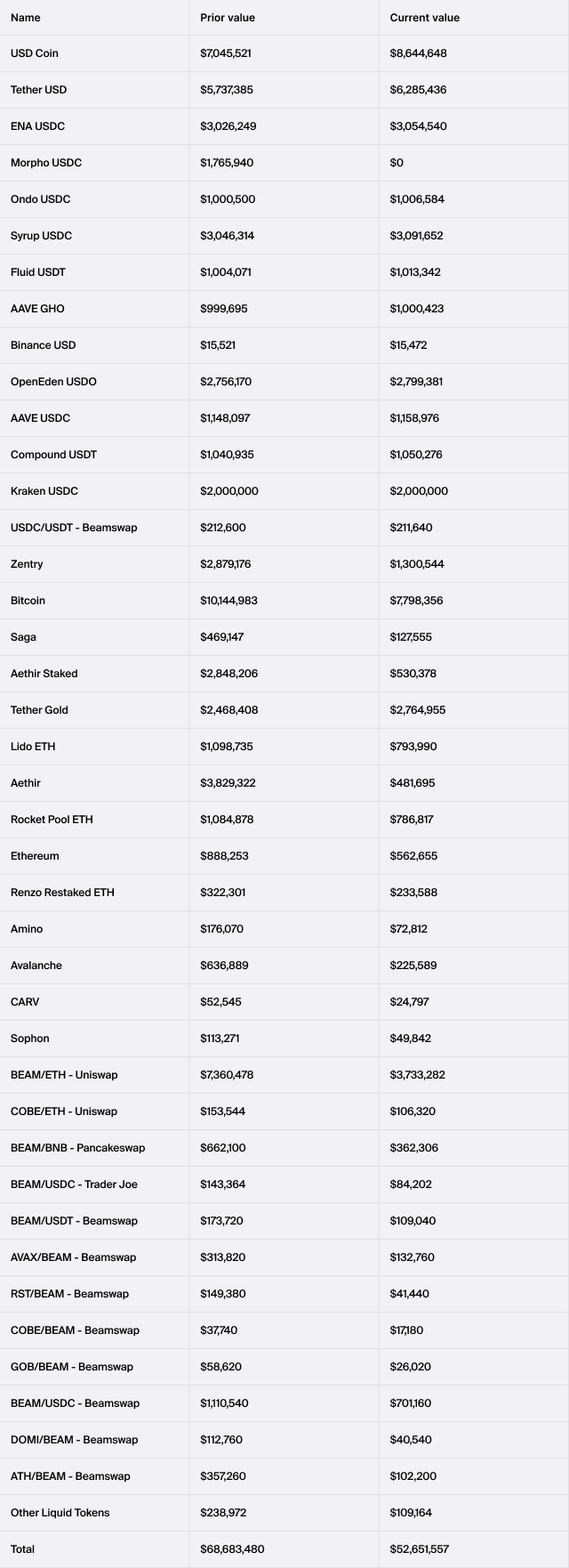 Breakdown of the Beam ecosystem treasury (the “Treasury”) as of December 31st 2025