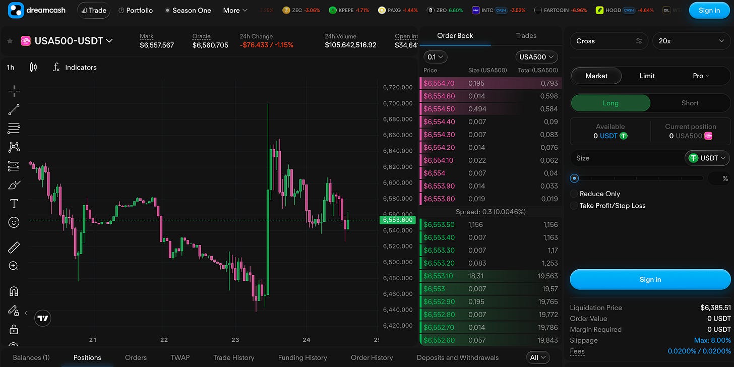 We’re excited to share that Tether, the largest company in the digital asset industry, has made a strategic investment in Supreme Liquid Labs, the operating entity behind Dreamcash. This is a significant milestone for Dreamcash’s mission to bring Hyperliquid’s products, including RWA perpetuals, to millions of traders worldwide. Read the full announcement for more details.